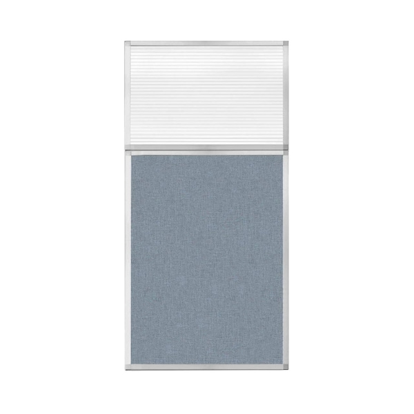Hush Panel Configurable Cubicle Partition 3' x 6' W/ Window Powder Blue Fabric Clear Fluted Window