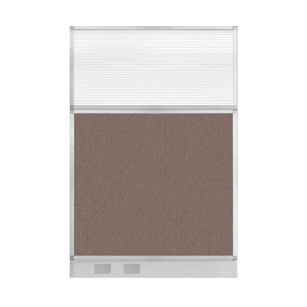 Hush Panel Configurable Cubicle Partition 4' x 6' Latte Fabric Clear Fluted Window w/ Cable Channel