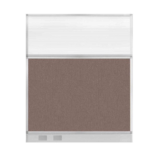 Hush Panel Configurable Cubicle Partition 5' x 6' Latte Fabric Clear Fluted Window w/ Cable Channel