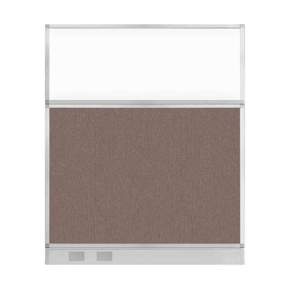 Hush Panel Configurable Cubicle Partition 5' x 6' Latte Fabric Clear Window w/ Cable Channel