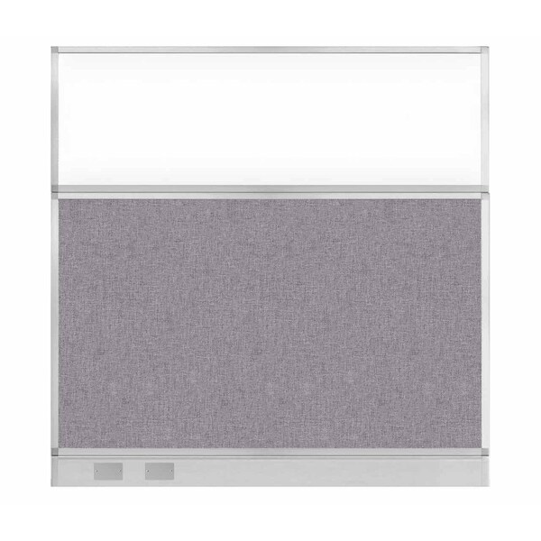 Hush Panel Configurable Cubicle Partition 6' x 6' Cloud Gray Fabric Clear Window w/ Cable Channel