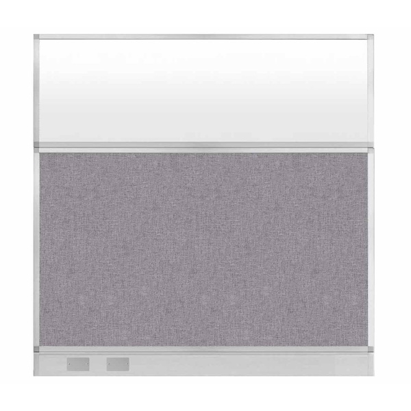 Hush Panel Configurable Cubicle Partition 6' x 6' Cloud Gray Fabric Frosted Window w/ Cable Channel