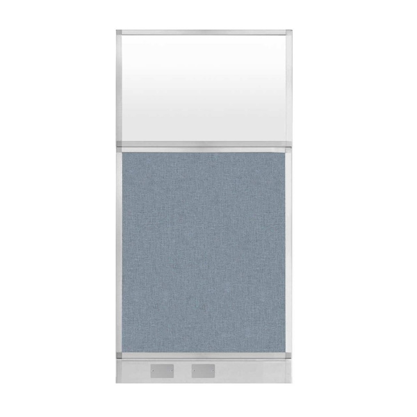 Hush Panel Cubicle Partition 3' x 6' Powder Blue Fabric Frosted Window w/ Cable Channel