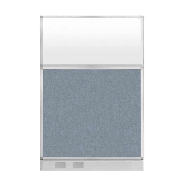 Hush Panel Cubicle Partition 4' x 6' Powder Blue Fabric Frosted Window w/ Cable Channel