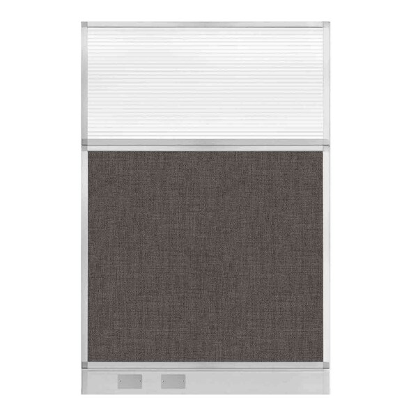 Hush Panel Cubicle Partition 4' x 6' W/ Window Mocha Fabric Clear Fluted Window W/ Cable Channel