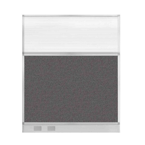 Hush Panel Cubicle Partition 5' x 6' Charcoal Gray Fabric Clear Fluted Window w/ Cable Channel