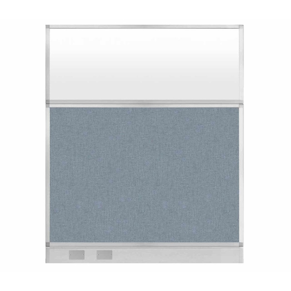 Hush Panel Cubicle Partition 5' x 6' Powder Blue Fabric Frosted Window w/ Cable Channel