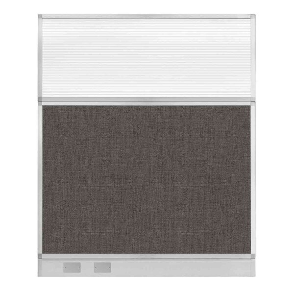 Hush Panel Cubicle Partition 5' x 6' W/ Window Mocha Fabric Clear Fluted Window W/ Cable Channel