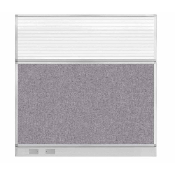 Hush Panel Cubicle Partition 6' x 6' Cloud Gray Fabric Clear Fluted Window w/ Cable Channel