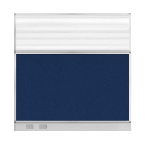 Hush Panel Cubicle Partition 6' x 6' Navy Blue Fabric Clear Fluted Window w/ Cable Channel