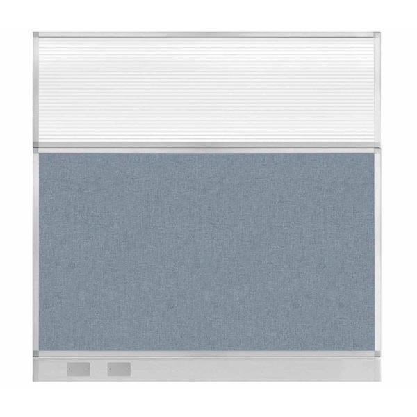 Hush Panel Cubicle Partition 6' x 6' Powder Blue Fabric Clear Fluted Window w/ Cable Channel