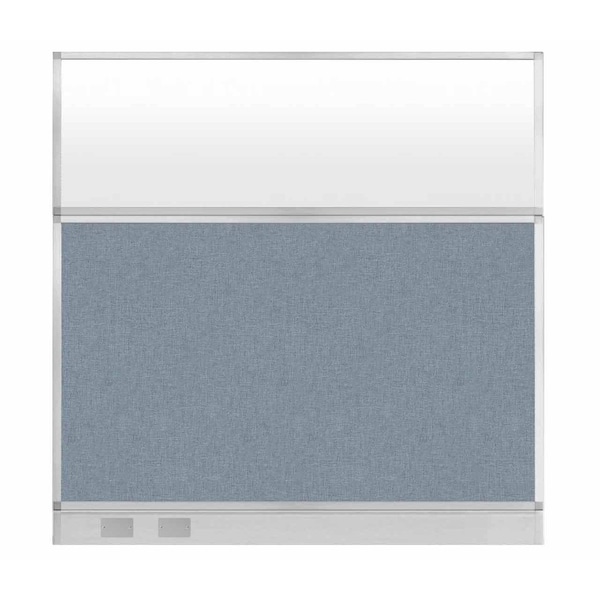 Hush Panel Cubicle Partition 6' x 6' Powder Blue Fabric Frosted Window w/ Cable Channel