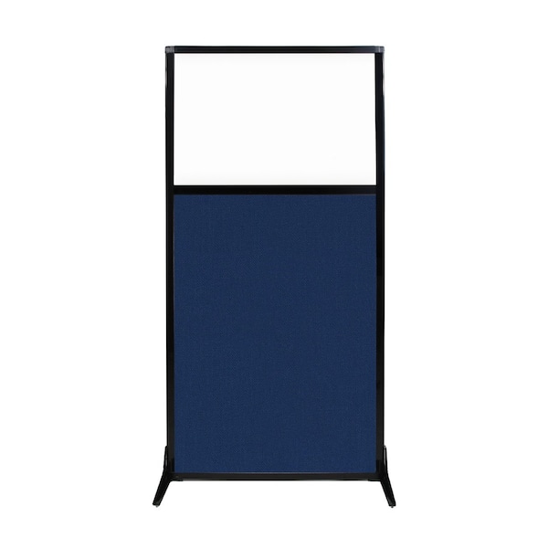 Work Station Screen 33" x 70" Navy Blue Fabric With Clear Window