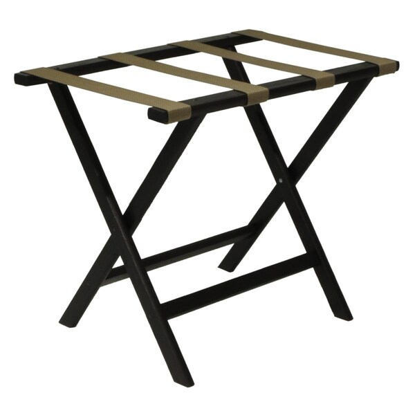 Deluxe Straight Leg Luggage Rack with Tan Straps - Black