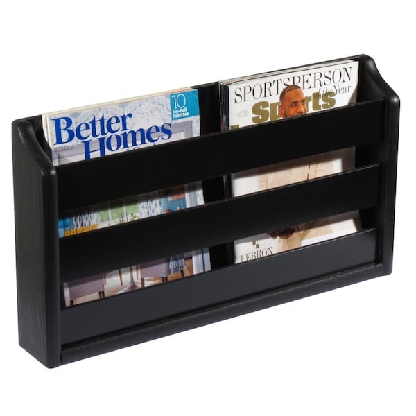Doublewide Oak Magazine Rack, Wall Mount or Tabletop - Black