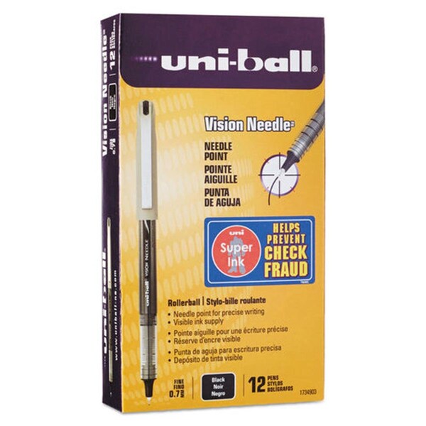 UBC 0.7 mm Fine Black Ink Silver Barrel VISION Needle Stick Roller Ball Pen, 12PK
