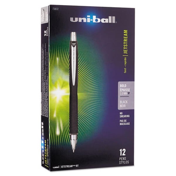 UBC 1 mm Bold Black Ink, Black Barrel Jetstream RT Retractable Roller Ball Pen