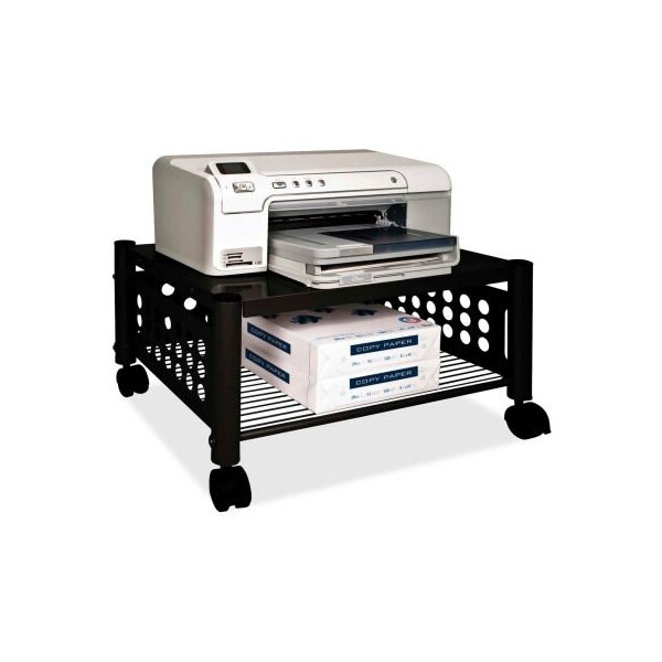 Vertiflex underdesk machine stand, black with durable steel and wire construction, versatile machine stand is sturdy enough to hold a printer, fax machine or personal copier. Two convenient openings let you route cords/cables and use them as a handle to pull stand from beneath worksurface. Easy-to-assemble, underdesk machine stand rolls easily on four twin-wheel casters (two locking).