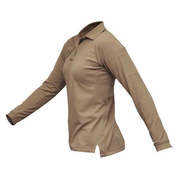 Women's Tactical Polo, Size M, Color Tan, Material 100 Percent Polyester, Fits Chest Size 35 In. to 36 In., Sleeve Length Long Sleeve, Closure Type Button, Fabric Polyester, Pockets 2, Binding 4-Hole Melamine Buttons, Fabric Weight 6.5 oz.