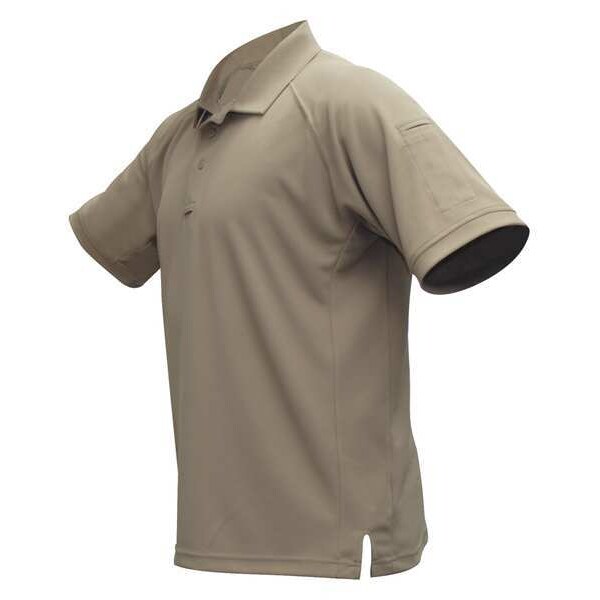 Tactical Polo Shirt, Polyester, Button Front, 2 Pocket(s), Tan, M