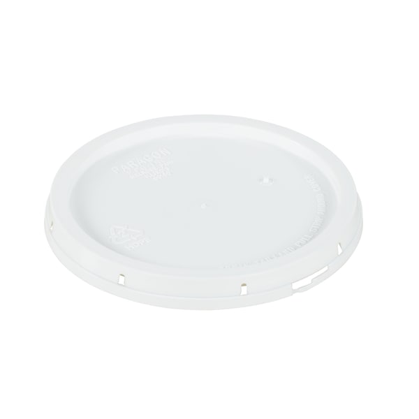 Plastic lid for use with plastic pail. This plastic lid is constructed of one-hundred percent (100%) prime virgin high density polyethylene (HDPE) and comply with FDA regulations, with a tear tab. Suitable for shipping according to D.O.T. standards.