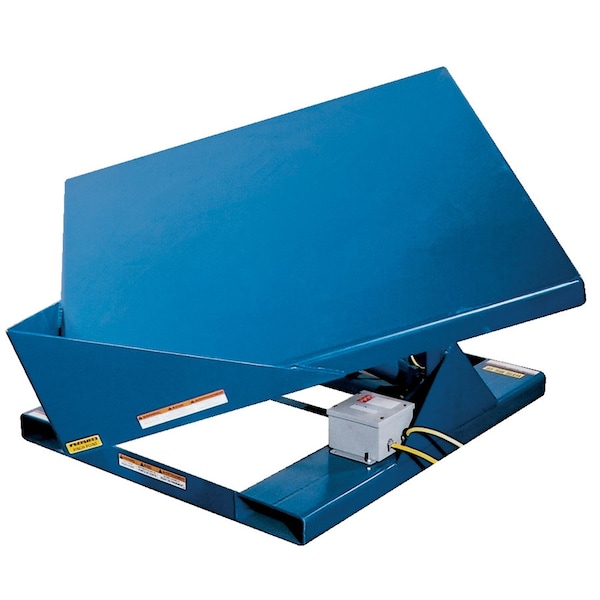 The electric/hydraulic corner tilter reduces repetitive motion injuries and fatigue while making your job easier and faster. It's designed to corner tilt pallets, crates, boxes, or baskets. The AC powered motor has a push button control with additional voltage options available. The built in fork tubes make portability easy with a fork truck.