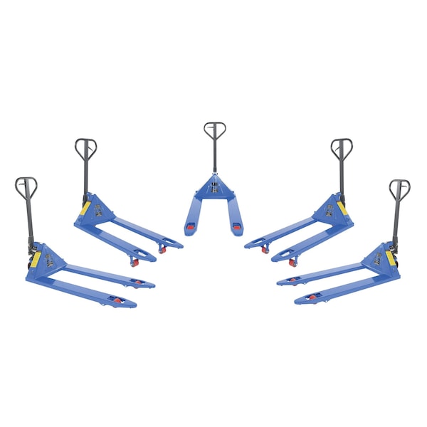 An economy hand pallet truck is the perfect solution for moving heavy pallets and skids. With friendly design the unit is simply accessible for any maintenance or general upkeep needs. The hydraulic hand pump allows the user to more precisely raise and lower the unit to best fit the situation. A powder coated finish over a sleek steel construction bakes in added toughness.