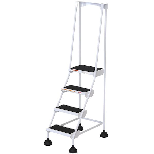 72.9375 H Steel Commercial Spring Loaded Rolling Ladder, 4 Steps