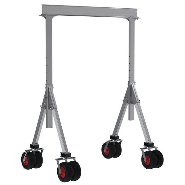 Aluminum Adjustable Height Gantry Crane w/Pneumatic Rubber Casters 8 ft. x 12 ft. 4K Silver