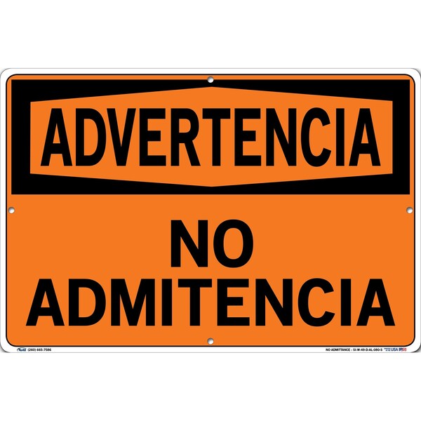 Aluminum Sign, 12-1/2" Height, 18-1/2" Width, Aluminum, Rectangle, Spanish (Discontinued)