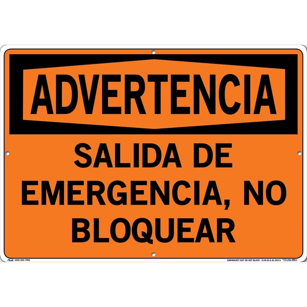 Aluminum Sign, 14-1/2" Height, 20-1/2" Width, Aluminum, Rectangle, Spanish (Discontinued)