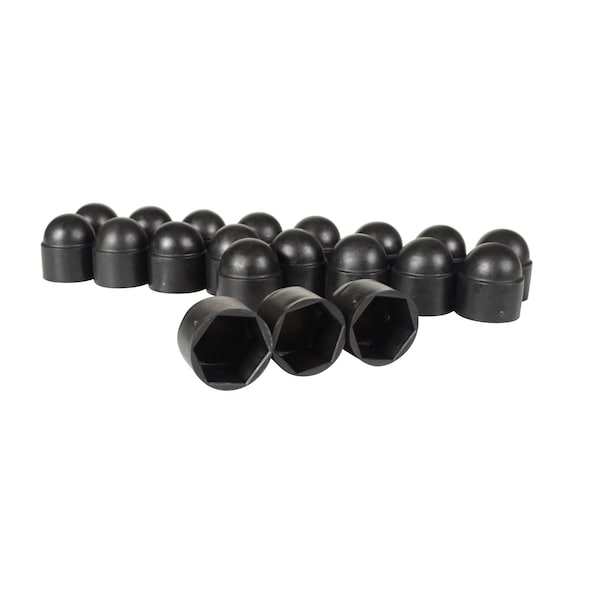 Hex Spoke Bolt Cap, 3/4 in Fits Bolt Dia, Black, Plastic Matte, 20 PK