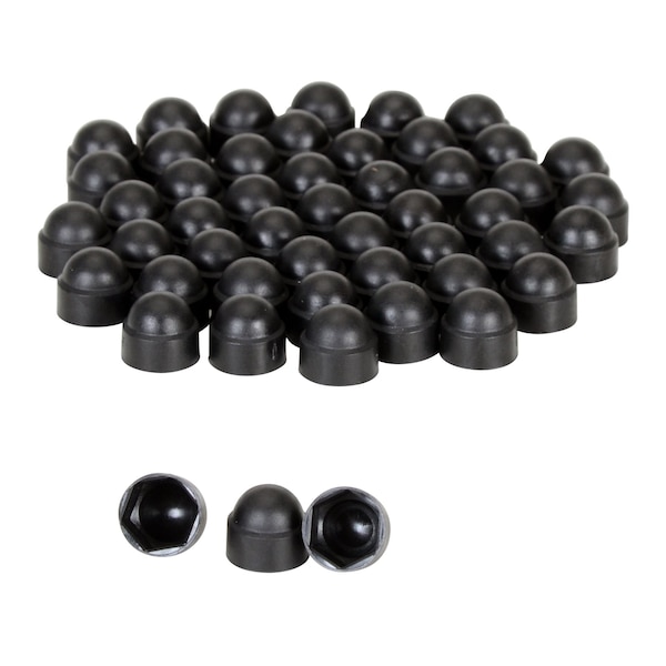 Hex Spoke Bolt Cap, 3/8 in Fits Bolt Dia, Black, Plastic Matte, 50 PK