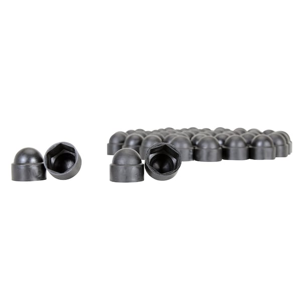 Hex Spoke Bolt Cap, 7/8 in Fits Bolt Dia, Black, Plastic Matte, 50 PK