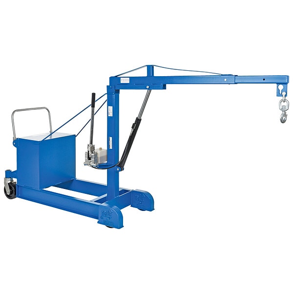 Engine Crane, Frame Material Steel, Load Capacity 0.25 ton, Number of Boom Positions 3, Boom Capacity (First Position) 0.1 ton, Boom Capacity (Second Position) 0.18 ton, Boom Capacity (Third Position) 0.25 ton, Boom Capacity (Fourth Position) Not Applicable, Color Blue, Caster Type (2) Rigid, (2) Swivel, Crane Type Engine Crane, Extended Boom Length 67 3/4 in, Features Reinforced Leg Assemblies, Frame Material Finish Powder Coated, Hook Height (First Position) 74.44 in