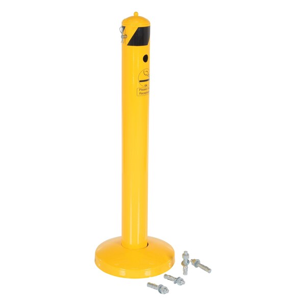 Create barriers around workstations and machinery. Removable top is connected to steel container for holding cigarette butts. Dome base to hide installation bolts. Powder coat safety yellow finish for easy visibility