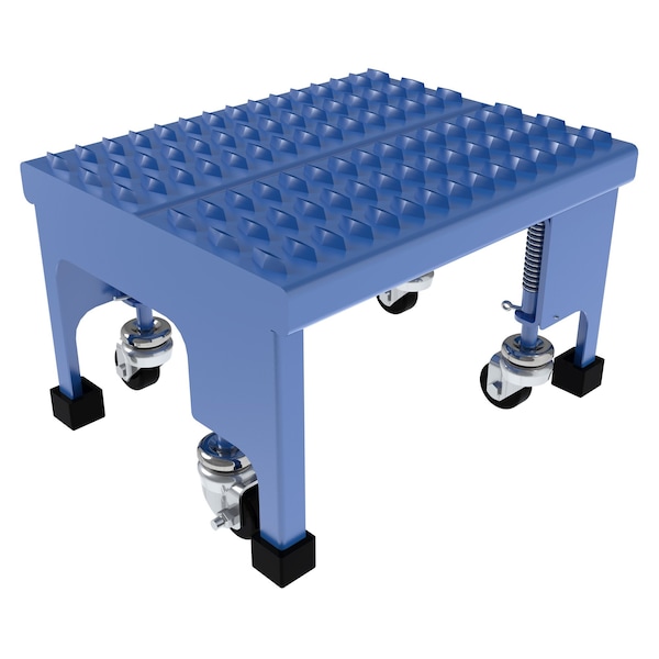 The single step standard slope ladder is a portable warehouse ladder for every-day use applications. Grip strut steps, no handrail and welded square tubular steel construction with powder-coat blue finish. Rubber feet provided for floor protection. Unit has 2 two all directional spring-loaded swivel casters and 2 swivel casters with total locks. Ships fully assembled and ready to use.