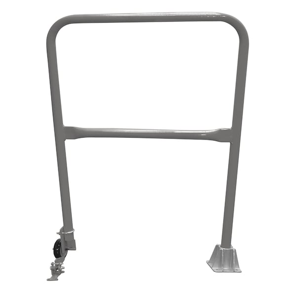 Economical safety swing gates are an economical way to protect people from dock falls. Durable railings are constructed from schedule 10 pipe 1-5/8 O.D.. Units have a top rail height of 46-1/4 and a 25 mid-rail. 4 poly-on-poly wheel allows units to be swung out of the way. Cast single socket is included.
