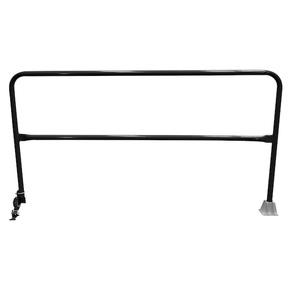 Economical safety swing gates are an economical way to protect people from dock falls. Durable railings are constructed from schedule 10 pipe 1-5/8 O.D.. Units have a top rail height of 46-1/4 and a 25 mid-rail. 4 poly-on-poly wheel allows units to be swung out of the way. Cast single socket is included.