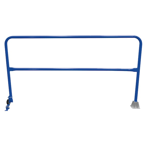Economical safety swing gates are an economical way to protect people from dock falls. Durable railings are constructed from schedule 10 pipe 1-5/8 O.D.. Units have a top rail height of 46-1/4 and a 25 mid-rail. 4 poly-on-poly wheel allows units to be swung out of the way. Cast single socket is included.