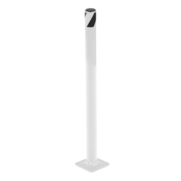Safety pipe design can be used either inside or out. Powder coated white finish offers an attractive long lasting look. Heavy-duty welded steel construction provides long lasting protection. Base plate includes four pre-drilled mounting holes for quick and easy installation