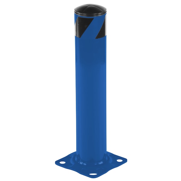 Safety pipe design can be used either inside or out. Powder coated blue finish offers an attractive long lasting look. Heavy-duty welded steel construction provides long lasting protection. Base plate includes four pre-drilled mounting holes for quick and easy installation