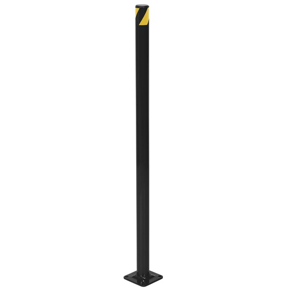 Safety pipe design can be used either inside or out. Powder coated black finish offers an attractive long lasting look. Heavy-duty welded steel construction provides long lasting protection. Base plate includes four pre-drilled mounting holes for quick and easy installation