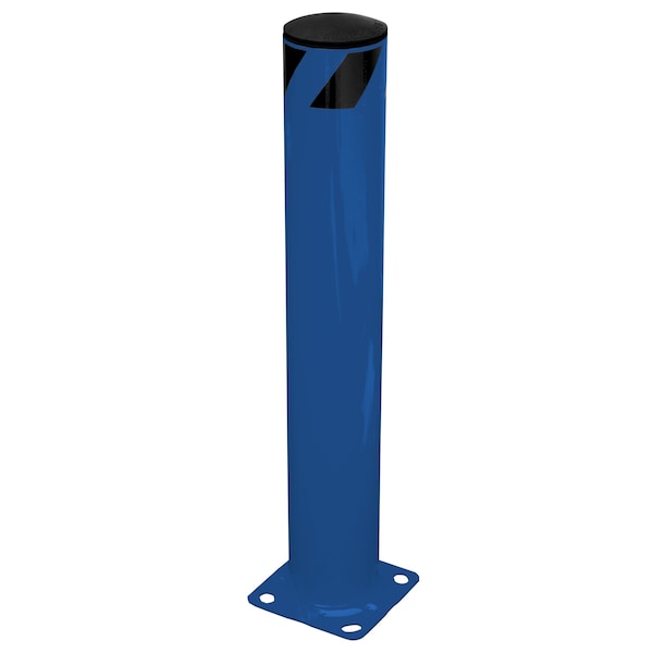 Safety pipe design can be used either inside or out. Powder coated blue finish offers an attractive long lasting look. Heavy-duty welded steel construction provides long lasting protection. Base plate includes four pre-drilled mounting holes for quick and easy installation