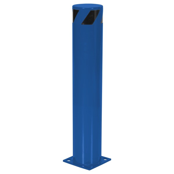 Safety pipe design can be used either inside or out. Powder coated blue finish offers an attractive long lasting look. Heavy-duty welded steel construction provides long lasting protection. Base plate includes four pre-drilled mounting holes for quick and easy installation