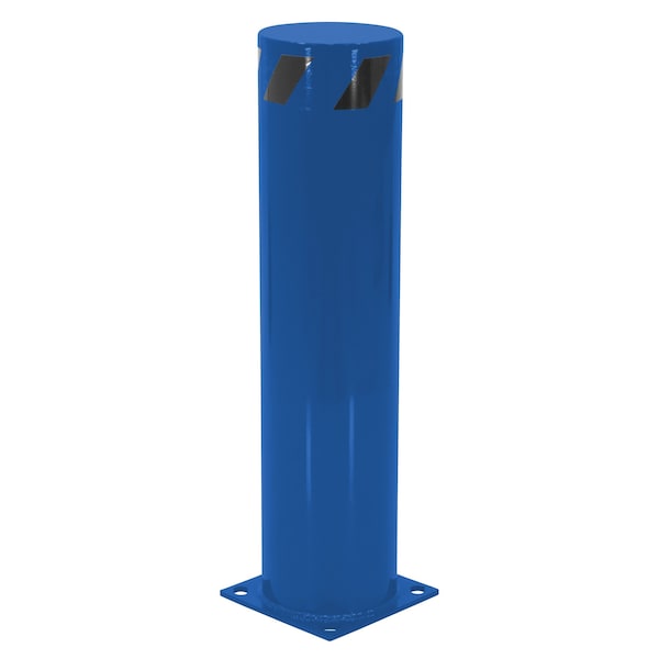 Safety pipe design can be used either inside or out. Powder coated blue finish offers an attractive long lasting look. Heavy-duty welded steel construction provides long lasting protection. Base plate includes four pre-drilled mounting holes for quick and easy installation