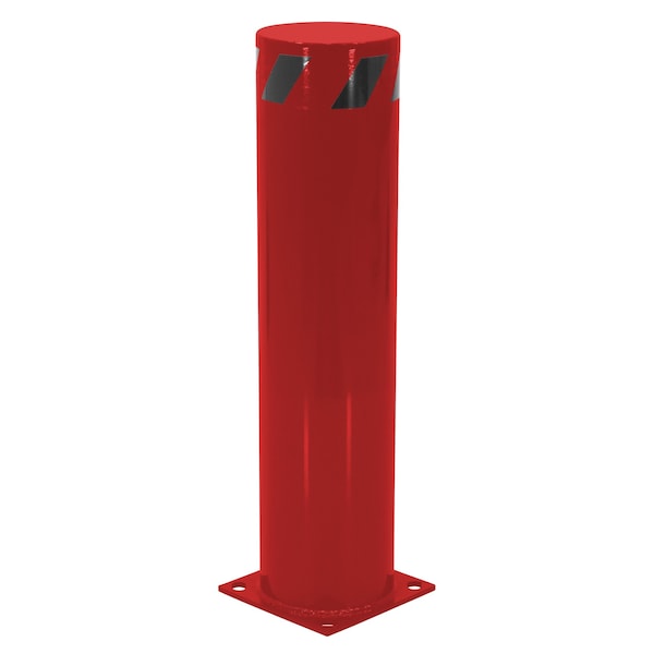 Safety pipe design can be used either inside or out. Powder coated red finish offers an attractive long lasting look. Heavy-duty welded steel construction provides long lasting protection. Base plate includes four pre-drilled mounting holes for quick and easy installation