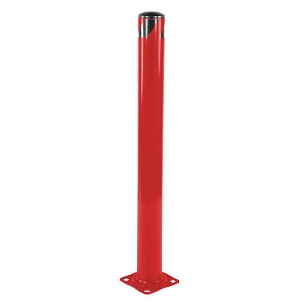 Safety pipe design can be used either inside or out. Powder coated red finish offers an attractive long lasting look. Heavy-duty welded steel construction provides long lasting protection. Base plate includes four pre-drilled mounting holes for quick and easy installation