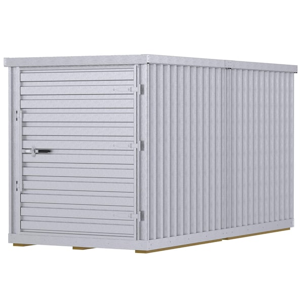 A modular storage building is ideal for keeping valuable items secure. This storage building is constructed of maintenance free galvanized corrugated paneling. The door design is wider than standard; perfect for storing oversized, large items and is hinged on the right-side of the entrance (padlock not included). Wooden floor design helps keep items dry and away from moisture. Assembly of unit is required. Hardware is included.