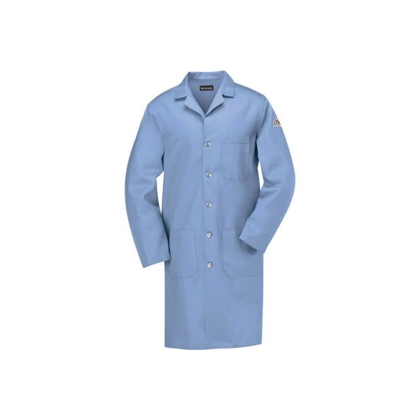 Bulwark unisex excel flame-resistant lab coat, 7 oz., light blue, cotton, xs features: model kel2 lab coat - excel fr 7 oz. light blue button-front closure lapel collar hemmed sleeve ends side vent openings this flame-resistant garment meets the requirements of en iso 11612:2008, protective clothing against heat and flame; en 340:2003, protective clothing - general requirements; and iec 61482-2:2009, live working - protective clothing against the thermal hazards of an electric arc
